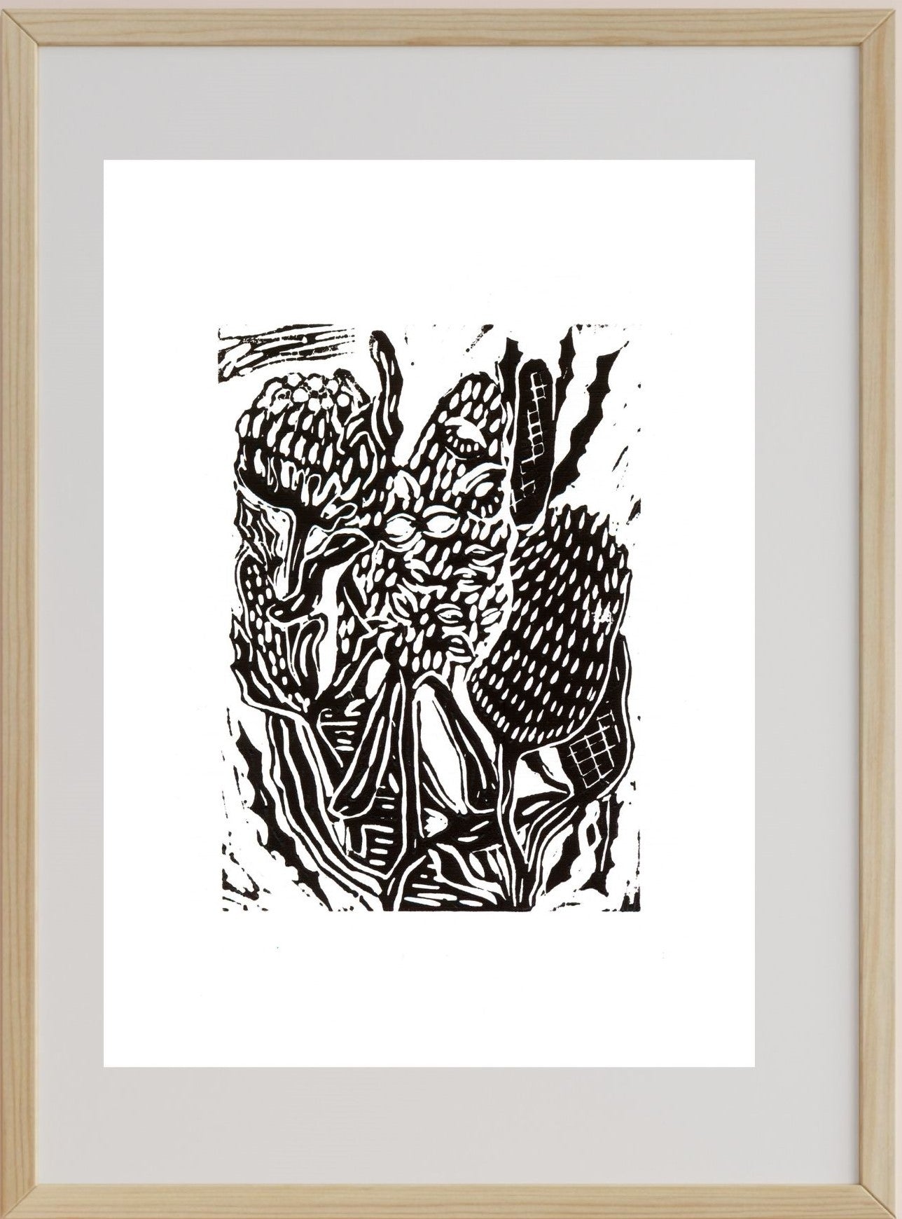This bold lino print artwork of Banksia Pods and the Native Australian Waratah will look fabulous in any room. Whether you're styling a whole property or are simply looking for one piece of art for that boring nook, Banksia Pods with Blooms will be a great option. The beauty of works in black and white is that they are timeless and elegant. Lino print shows the artists' mark making in great detail for a genuine handcrafted feel and uses strong contrast for dramatic effect.