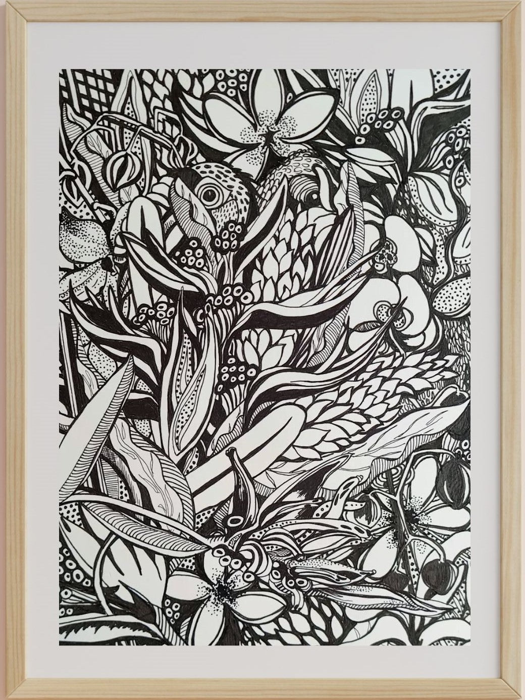 Singapore Garden, Ink Pen on Paper, 2025, Ali Atkinson.